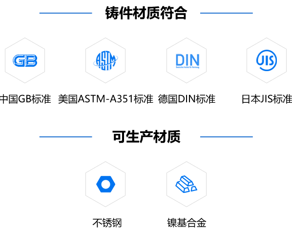 2、鑄件材質(zhì)符合:中國(guó)GB標(biāo)準(zhǔn) ,德國(guó)DIN標(biāo)準(zhǔn),美國(guó)ASTM-A351標(biāo)準(zhǔn),日本JIS標(biāo)準(zhǔn)。